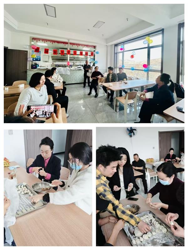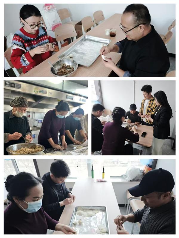 集團領(lǐng)導(dǎo)班子成員也一同加入到包餃子的行列中,一邊包餃子一邊與年輕員工分享冬至習(xí)俗:“冬至不端餃子碗,凍掉耳朵沒人管。今天咱們多包點,讓每個人都吃得暖暖和和!”